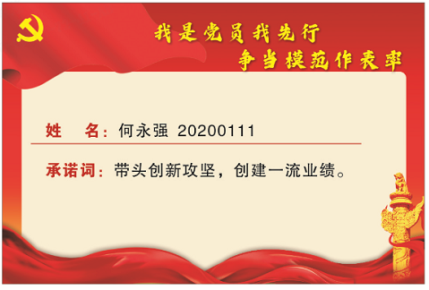 近日,華友廣西園區開展“亮身份、亮職責、亮承諾”主題活動,通過統一制作黨員身份桌牌,引導黨員時刻銘記身份、履行職責,進一步強化黨員意識,發揮先鋒模范作用,在各個支部內形成黨旗飄起來、黨徽戴起來、黨員干起來的濃厚氛圍。