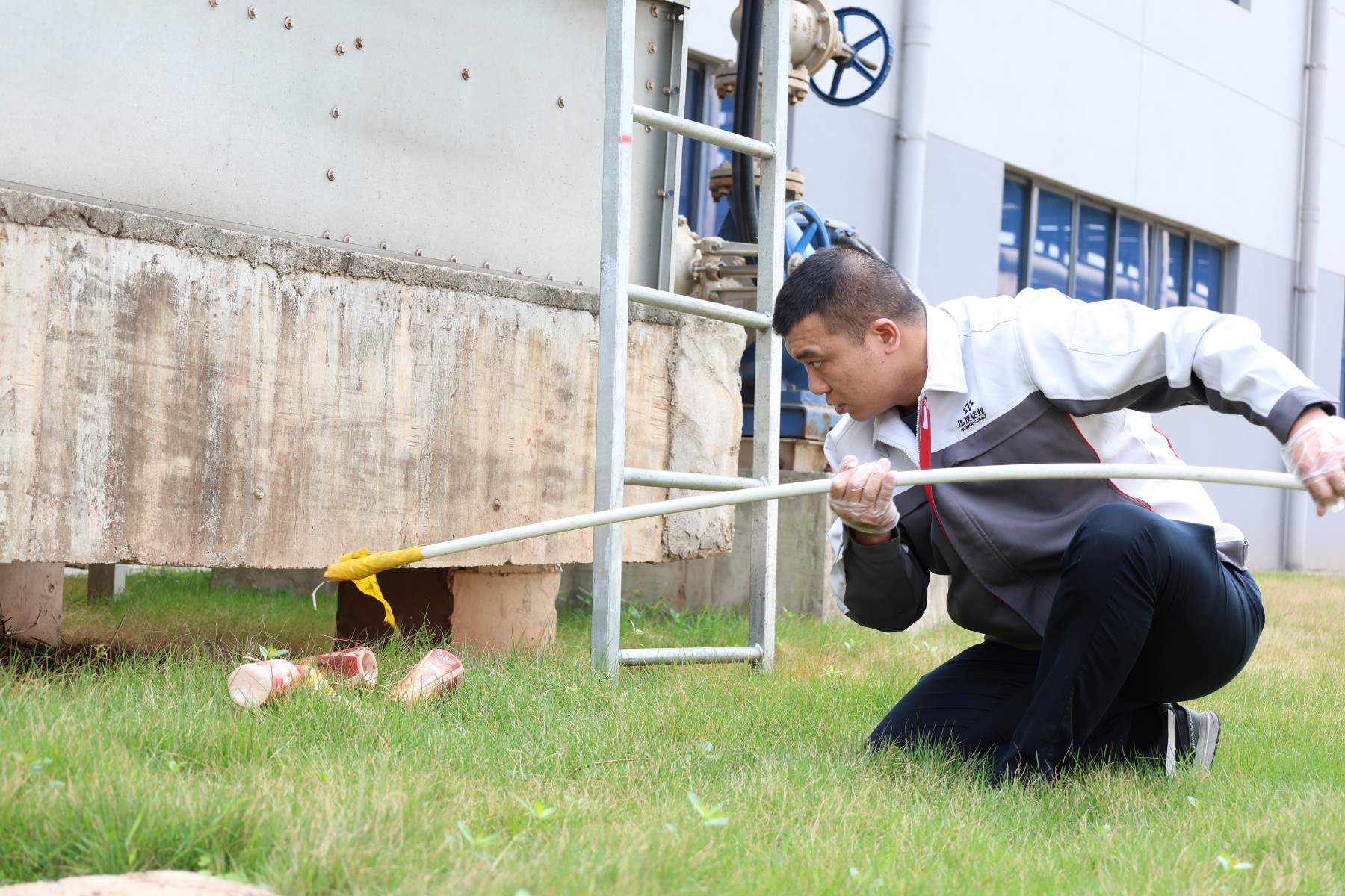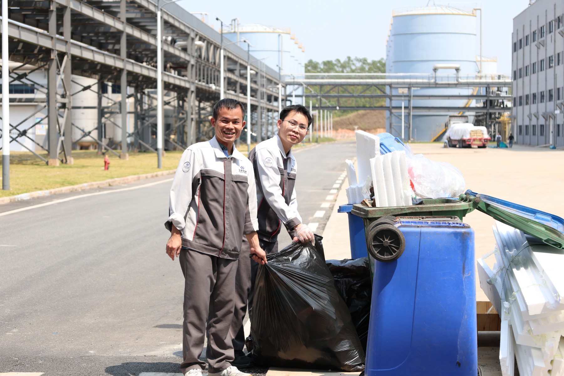 第二組負責清掃道路、草坪等公共區域的垃圾,他們拿著掃帚、垃圾袋等工具,穿梭在廠區的各個角落,無論是隱藏在草叢中的瓶子,還是散落在道路上的紙屑,都逃不過他們的火眼金睛。