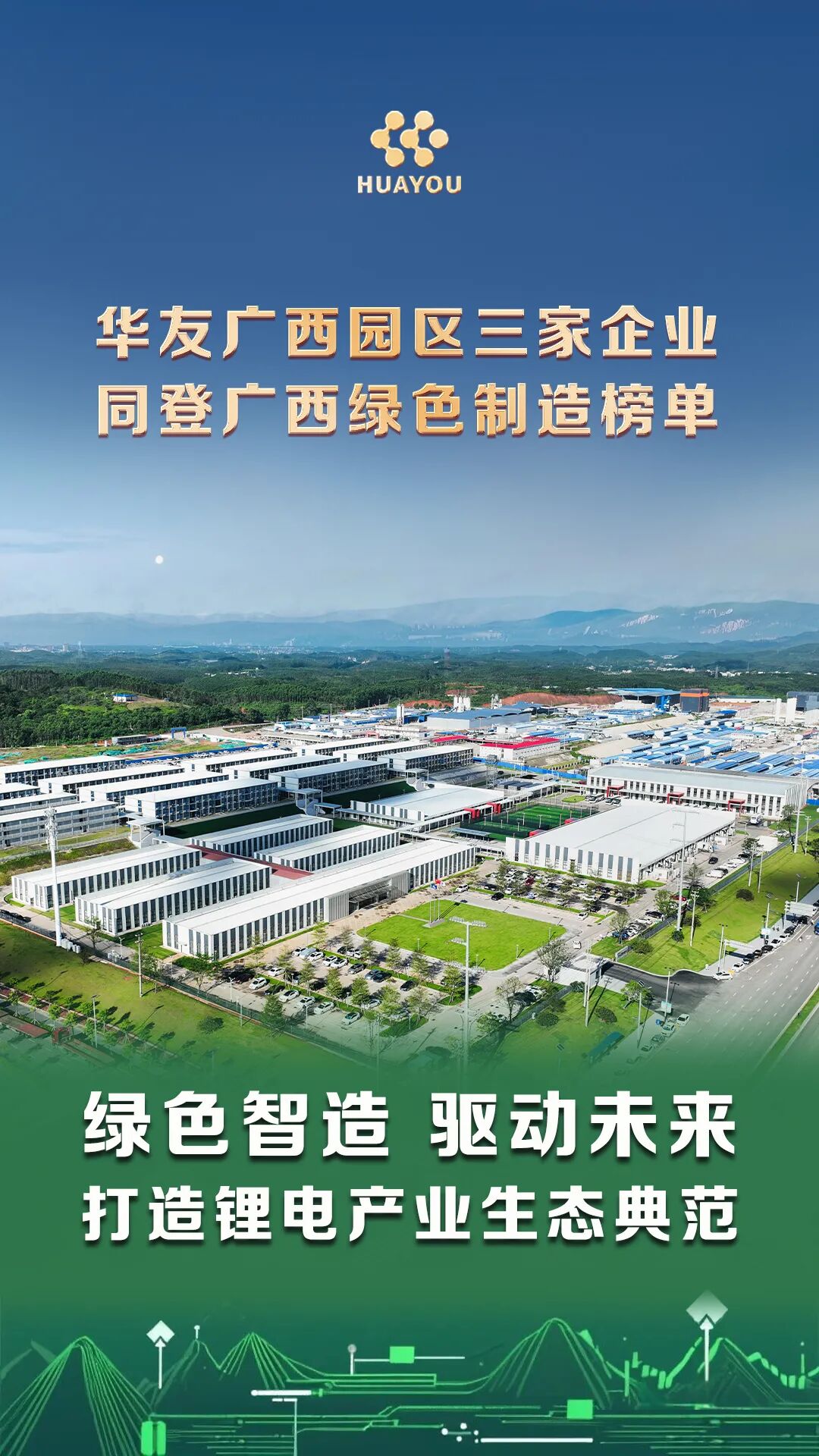 Huayou's three enterprises in Guangxi's industrial park have simultaneously been selected for the 2025 Guangxi Green Manufacturing List, fully demonstrating HuaYou's remarkable achievements in building a green manufacturing system and marking a new milestone in its zero-carbon industry strategy. Moving forward, HuaYou will continue to deepen its commitment to green development, foster collaborative innovation across the industrial chain, and steadily enhance its green manufacturing capabilities—contributing HuaYou's expertise and strength to achieving carbon peak and carbon neutrality goals, and helping build a beautiful China.