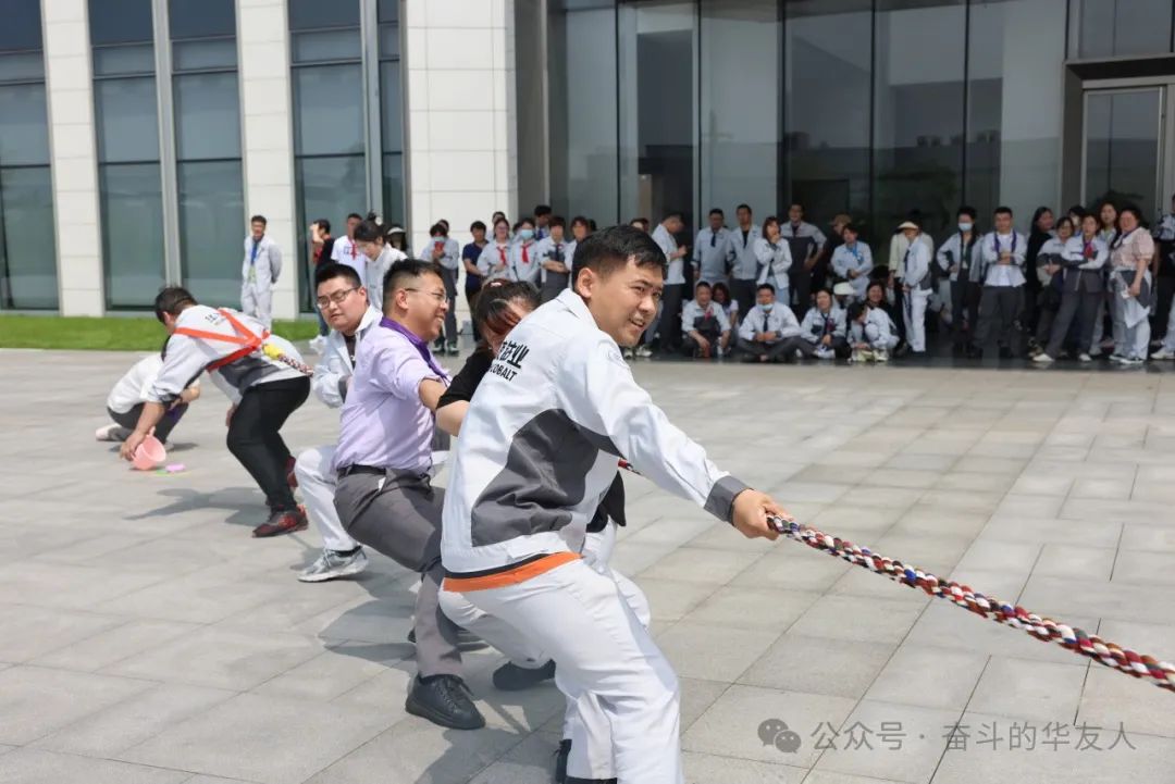 隨著裁判一聲哨響,拔河比賽正式開始。參賽隊友們緊握長繩,鼓足了勁,全力以赴。場外的加油聲、吶喊聲,此起彼伏,現場聲浪陣陣,氣氛高漲!