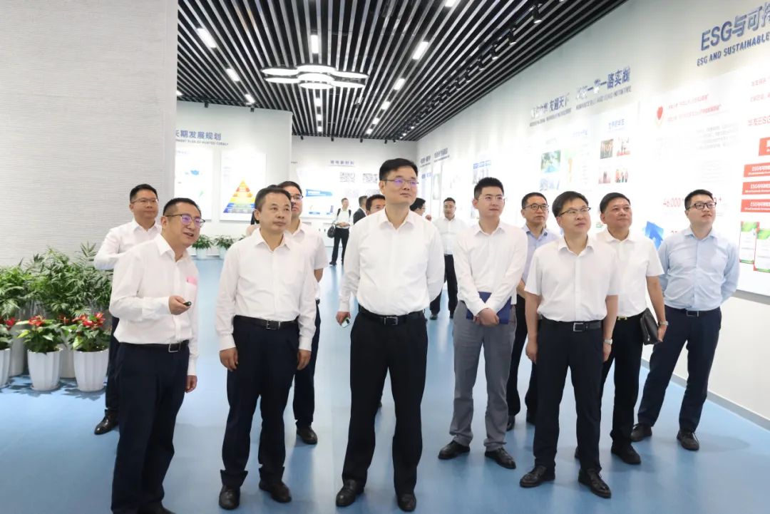 座談后,張天任一行先后參觀了華友展廳和華友新材料產業集團前驅體研究院,進一步了解了華友全球化發展歷程、產業布局和未來發展規劃等情況。在前驅體研究院,負責人向張天任一行介紹了華友前驅體研發團隊建設、領先技術工藝以及在三元前驅體、鈉電前驅體的研發應用成果,張天任對華友前驅體研究院的研發環境、設施設備及研發成果表示了熱烈稱贊,并對華友在鈉電前驅體領域的持續突破和取得的重大成果表示積極肯定。