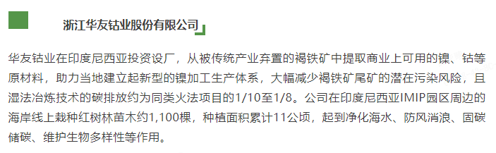 華友鈷業作為新能源行業的領軍企業,始終將可持續發展融入戰略核心,通過構建從鎳鈷鋰資源開發、綠色冶煉加工到三元前驅體和正極材料制造,再到資源循環回收利用的一體化產業鏈,推動行業清潔生產與碳中和進程,彰顯綠色先鋒的擔當;同時深耕社區賦能與員工成長,以技術創新帶動產業鏈價值共享,實現共贏共生;堅持高標準企業治理,以公開透明的ESG實踐贏得全球合作伙伴信任,持續引領行業高質量發展。
