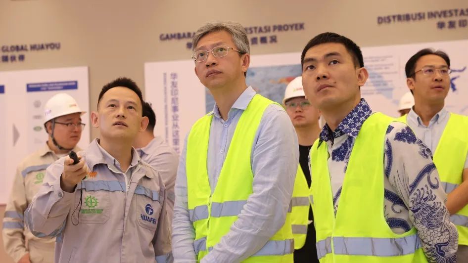 在緯達貝工業園,王大使對華飛項目進行實地調研。華友印尼區域管理中心負責人詳細介紹了華友緯達貝鋰電材料一體化綠色制造基地的情況。王大使在了解了當前全球最大紅土鎳礦高壓酸浸項目——華飛HPAL的工藝技術后,對華飛在智能化、環保化方面所取得的成效給予高度肯定。