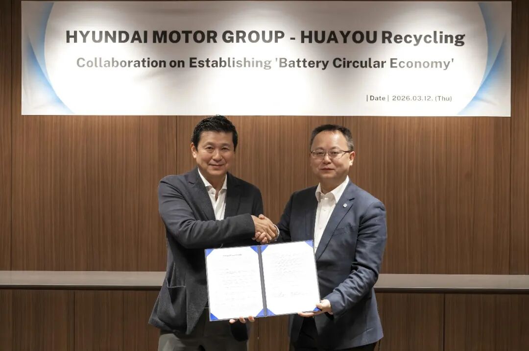 3月12日,浙江華友循環科技有限公司與韓國現代汽車集團(Hyundai Motor Group)在韓國正式簽署合作備忘錄(MOU)。